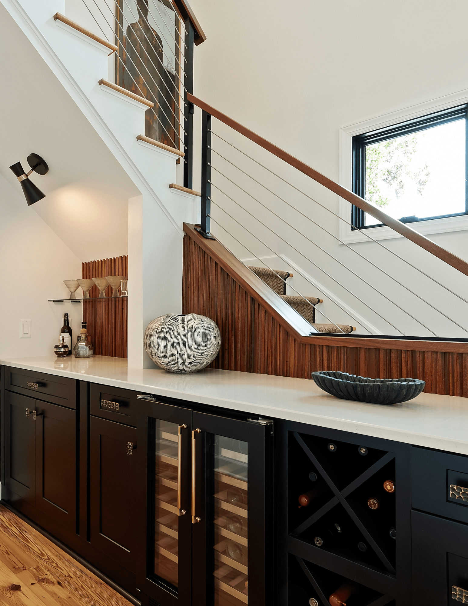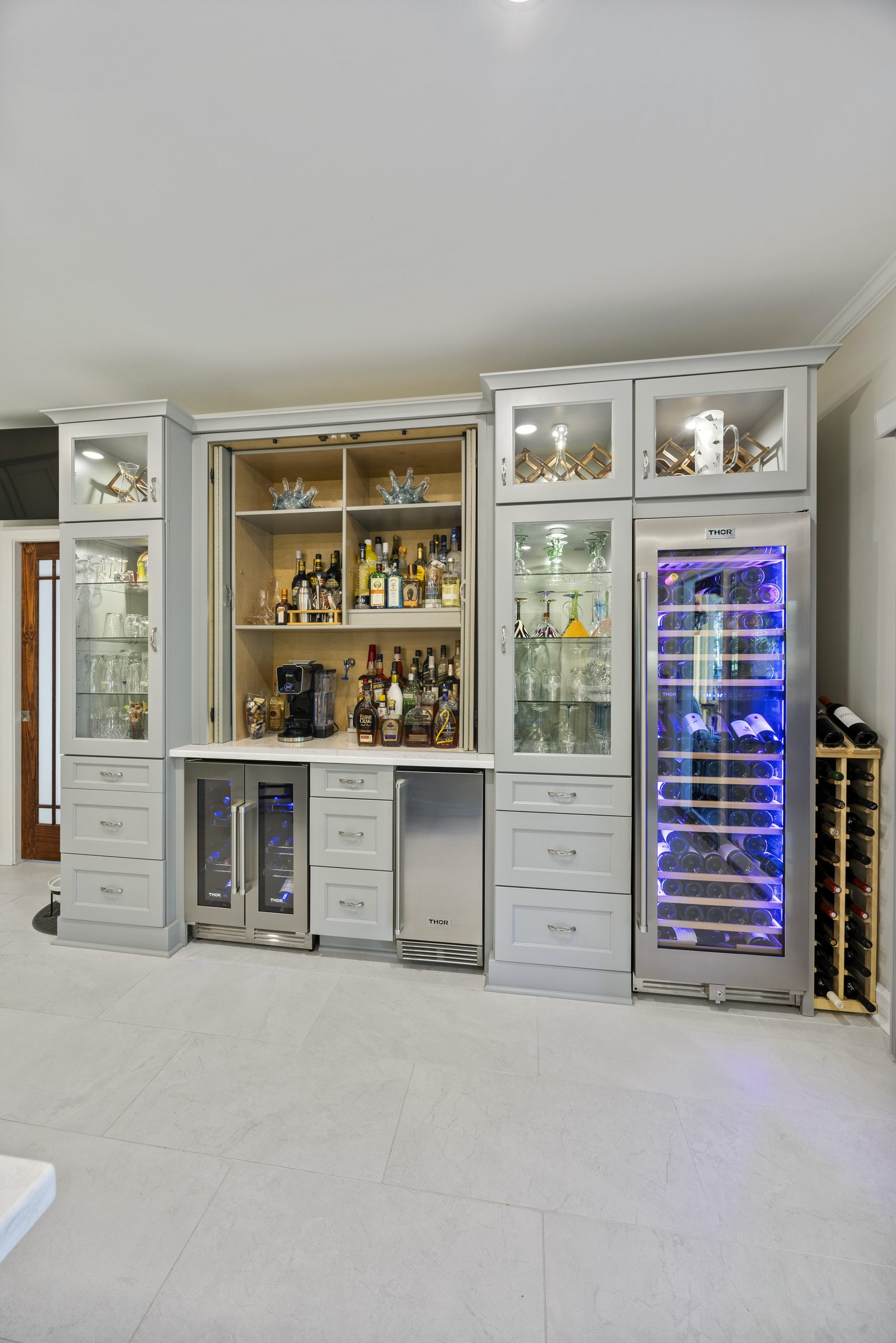 A dry bar is a cabinetry nook for storing wine, liquor, glassware, and bar tools—without a sink. It’s ideal for entertaining and often includes custom lighting, wine racks, and a mini fridge. A well-designed dry bar can boost home value and style. According to Zillow, homes with bar features sell for 2.4% more than expected.
