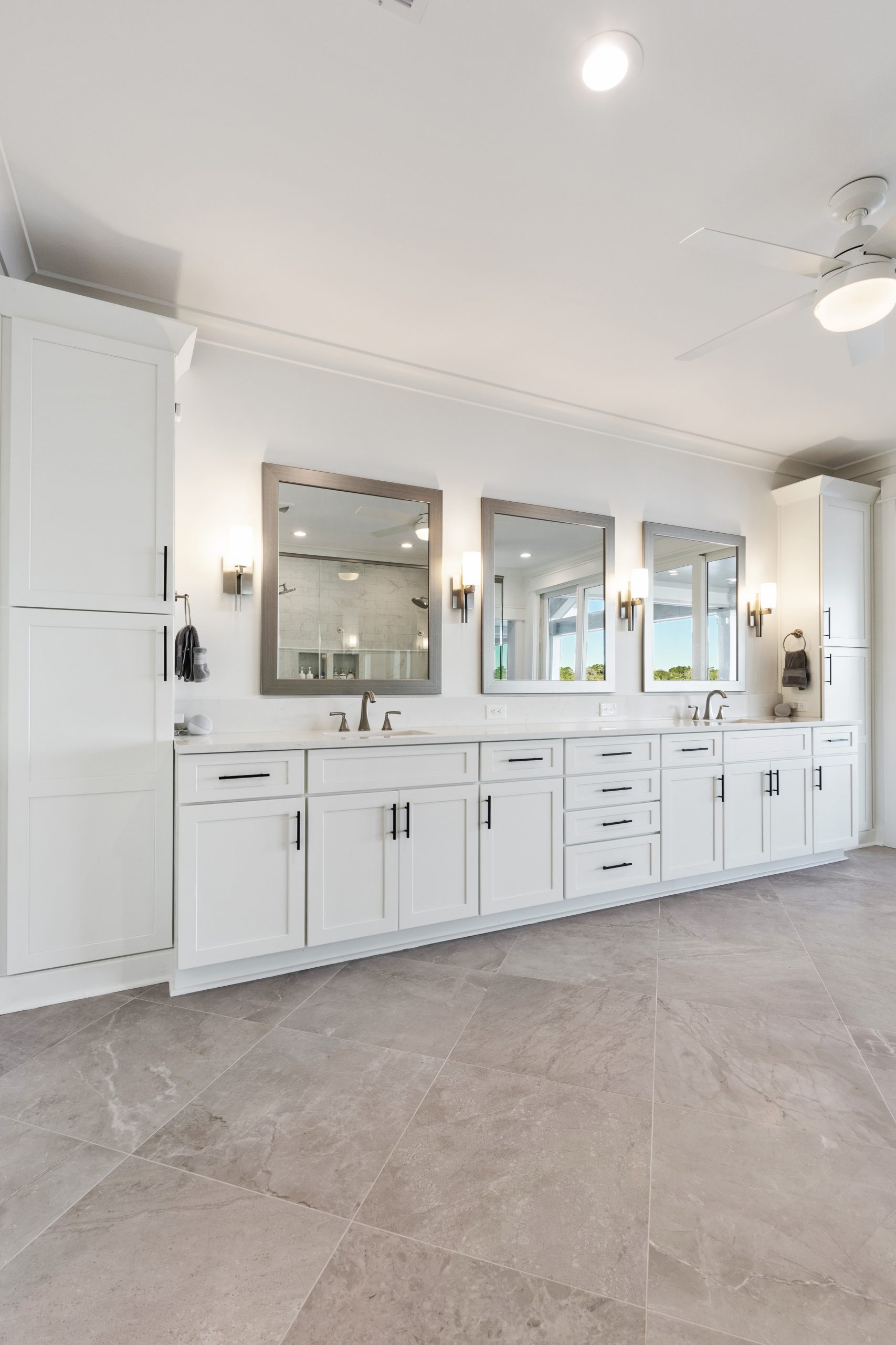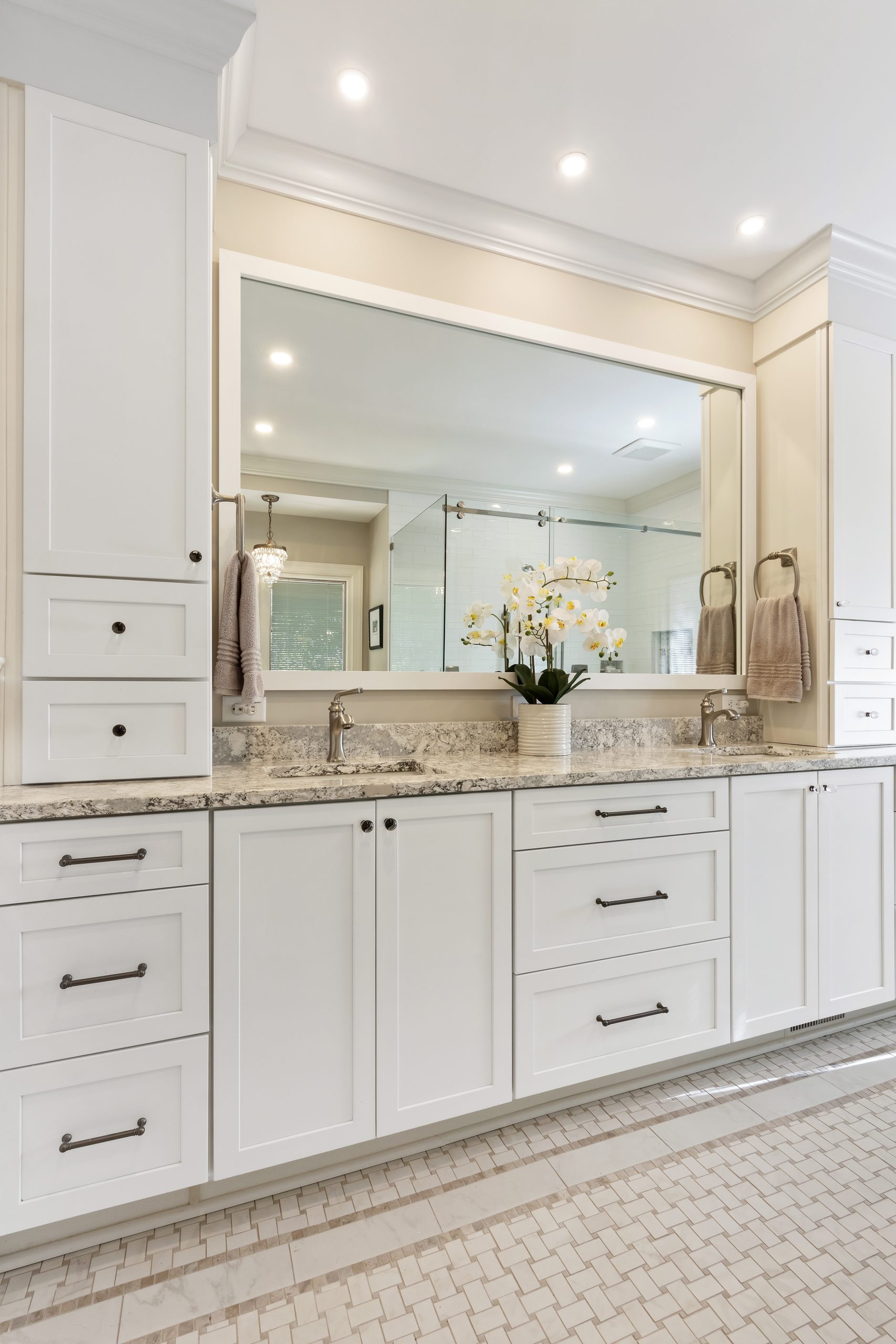 Tip: Choose a bathroom vanity with deep drawers or built-in dividers to neatly store grooming tools, makeup, and everyday essentials. For both beauty and practicality, custom vanity cabinets are a smart investment in your bathroom remodel.