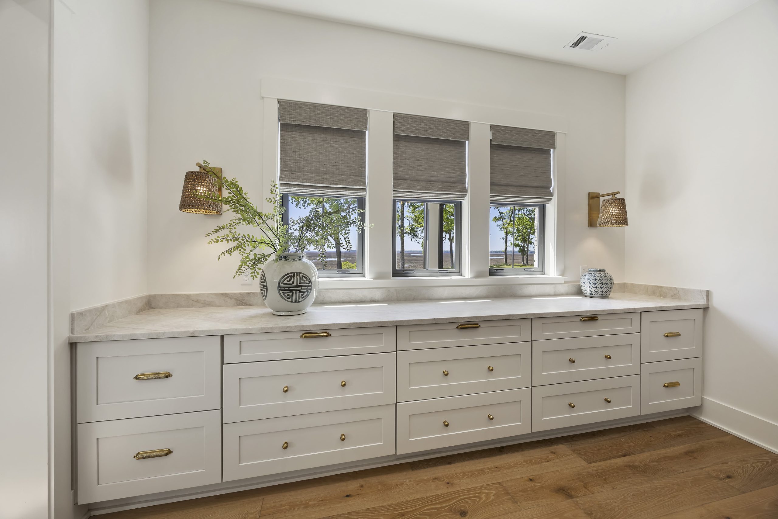 This stunning custom kitchen and full-home cabinetry project in Richmond Hill, Georgia, on Indian Bluff blends Southern charm with timeless design. From the soft Salt-finished Marsh Cabinets in the kitchen to the rich hunt green laundry room cabinetry, every detail was thoughtfully chosen to reflect both beauty and function. The Taj Mahal quartzite countertops bring a natural elegance, while clever additions like produce basket inserts, trash pull-outs, and tray dividers offer effortless organization. A Maple Saddle Island adds warmth and contrast, making it the perfect spot for gathering. The scullery, tucked just behind the kitchen, keeps messes hidden while preserving the home’s open, airy feel. Throughout the home—from the bathroom vanities to the master closet—our team provided custom solutions tailored to the family’s lifestyle. This is what we love: helping homeowners and builders bring new construction homes to life with cabinetry that does more than fill a space—it makes it feel like home. At Kitchen Design Solutions, we’re proud to be a one-stop shop for designers, builders, and families alike. Whether you’re dreaming up a kitchen renovation, planning a full home, or searching for the best kitchen remodeling company near you, our team is here to help turn vision into reality.